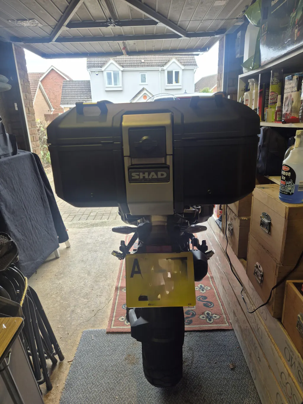 Traded a 1250GSA with luggage for a 1300TE without. Research led me to Shad and the TR37 Aluminium top box. A good, sturdy box that compliments the lines of the 1300TE. Clear fitting instructions and although the original BMW rear rack and grab rails have gone, the BMW luggage mounting rails are still in place while I decide on panniers. Shad expanding cases looking favourite.