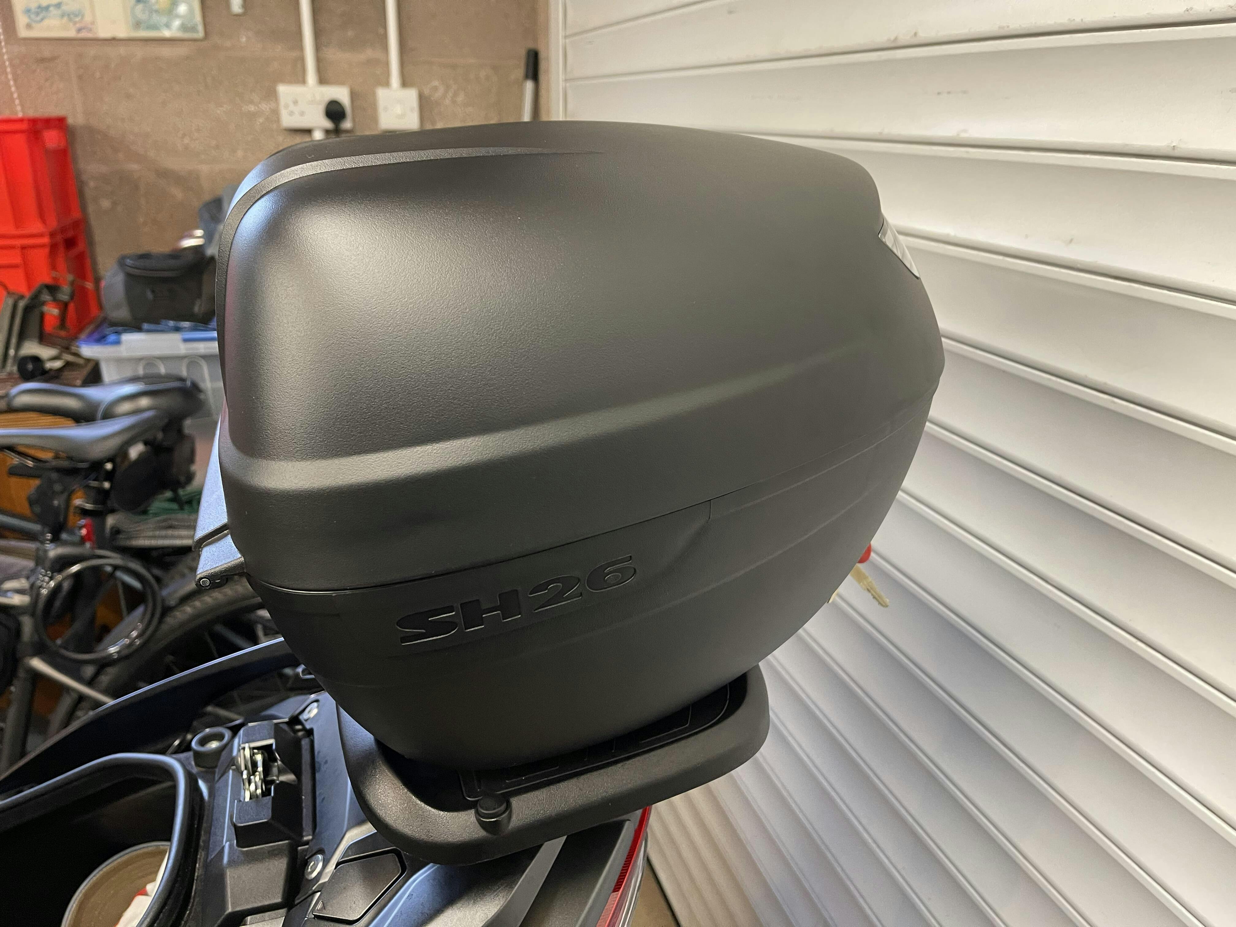 The SHAD SH26 motorcycle top box is the smallest and lightest in its range, weighing under 3kg while still offering the capacity for a full-face helmet inside.